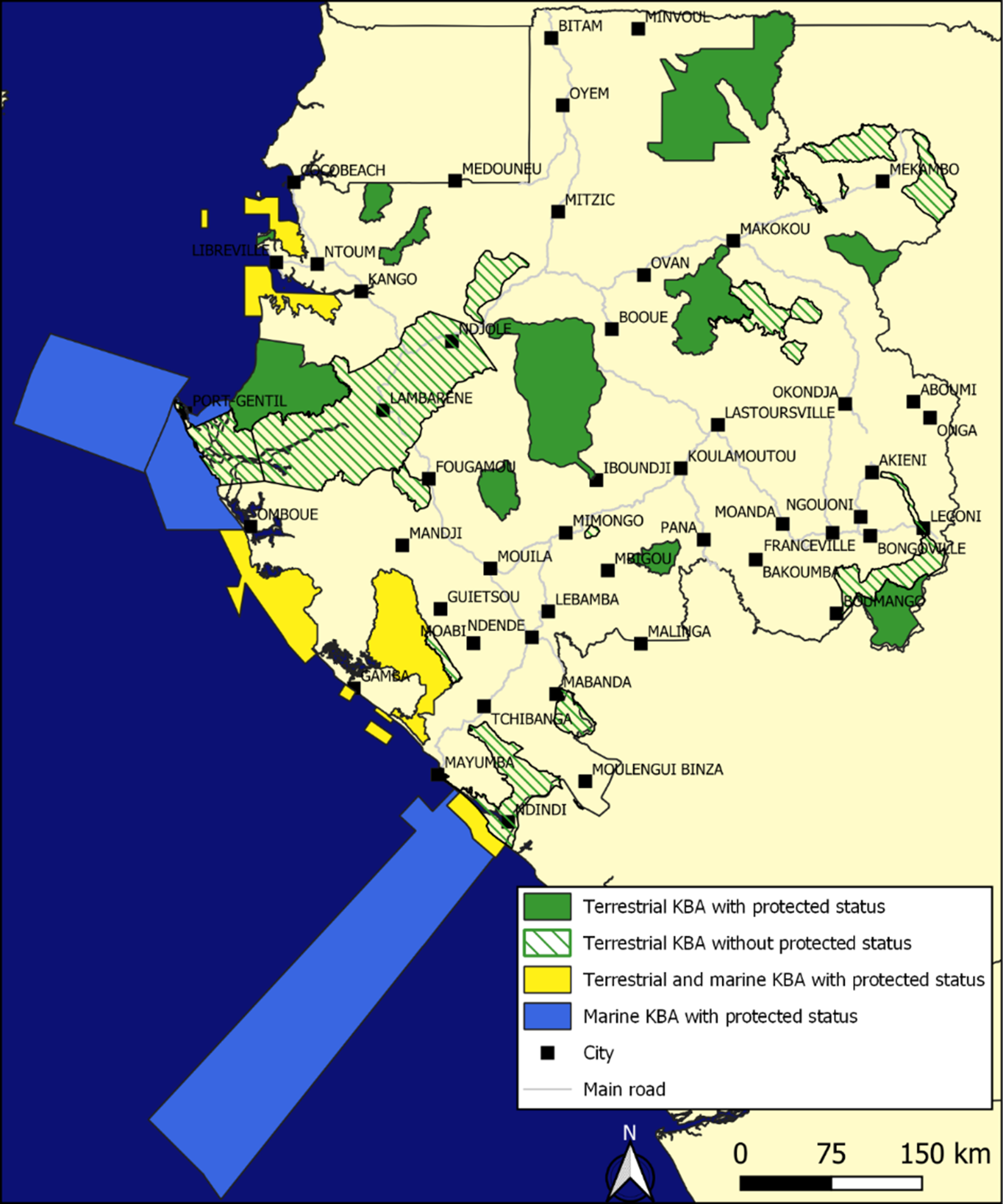 Gabon is one of the countries that promoted the goal of having 30% of each country's national territory under protected status by 2030 (30x30 target) when designing the Kunming-Montreal Global Biodiversity Framework (GBF). Currently, around 27% of Gabon's marine surface and 14% of its terrestrial territory meet this target. Identifying the country's KBAs was therefore an opportunity to find out whether the country's protected areas are essential for preserving global biodiversity, and to identify new territories to be protected as a priority.