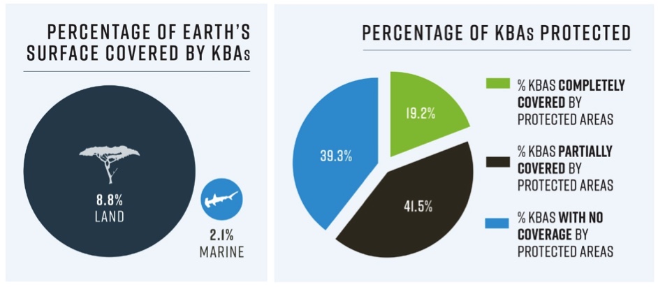 - KBAs are recognised by international conventions as important sites for biodiversity conservation and governments are required to report on the protected area coverage of KBAs